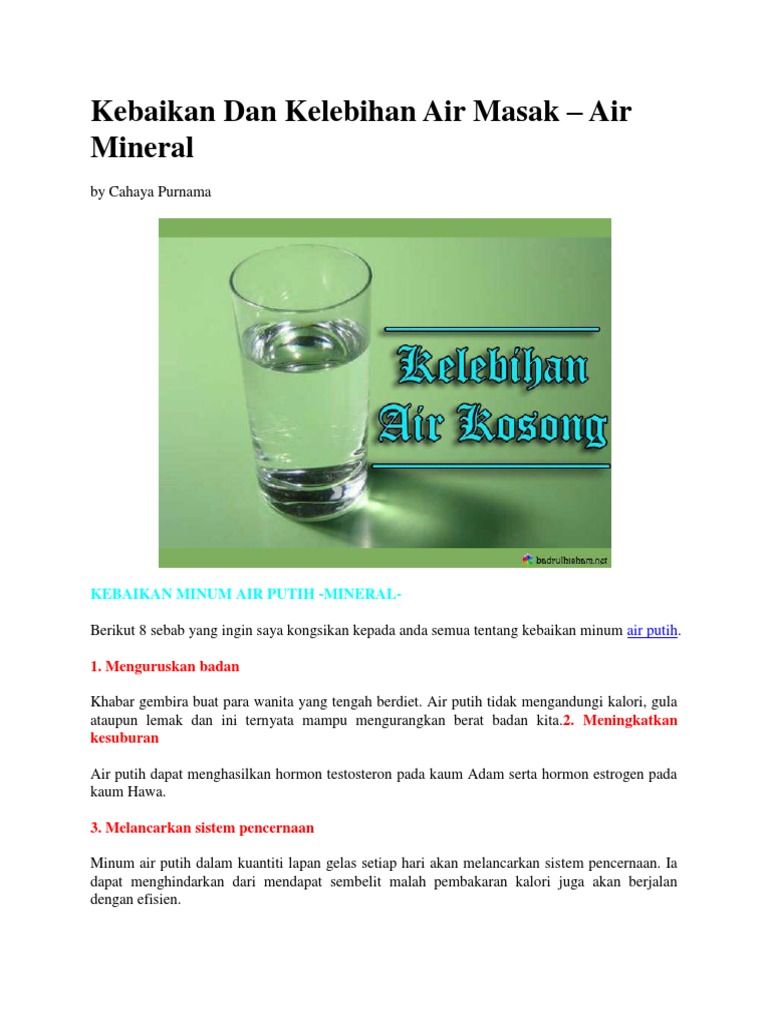 Kelebihan Minum Air Kosong Dunia Islam from p2u.me Air distilasi merupakan salah satu jenis air minum dalam kemasan yang berkualitas sangat baik dan memiliki beragam manfaat bagi tubuh. Ramai yang beranggapan minum air dalam kuantiti yang lebih banyak adalah lebih baik untuk badan mereka. Air kosong tidak mengandungi sebarang kalori bahkan tidak memberikan tenaga. Tips diet dengan air putih biar berat badan cepat turun 5 sebab minum air masak bantu cepat kuruskan badan diary of muhammad. Malah, mereka yang gemar minum air kosong juga kurang rasa mengidam untuk makan makanan tertentu. Apalagi, test ilmiah telah membuktikan sakit kepala, sakit badan, system jantung, arthritis, detak jantung cepat, epilepsi, kelebihan berat badan, asma bronchitis, tbc, meningitis. Banyak testimoni tentang kelebihan minum air dapat mengembalikan kecantikan sehingga menampakkan wajah 10 tahun lebih muda berbanding. Haa, banyak dak kelebihan minum ayaq kosong.