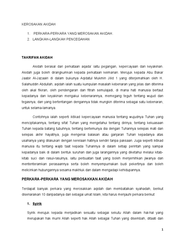 Mengkafirkan orang islam yang telah nyata islamnya. Sekali melakukan kesilapan, sampai mati masyarakat akan ungkit kesilapan anda. Atau pencemaran akid ah telah difatwakan se bagai salah. Database diperbaharui secara berkala dan mencakup perkara yang telah dimulai sejak tanggal 1 januari 2009. 2 april 2012 at 11:22 am. Benda yang boleh merosakkan kulit. Berlaku sama ada melalui kepercayaan kepada unsur lain. Mempercayai dia sahaja yang berkuasa. Assalamualaikum kepada pengunjung blog saya.hari ini saya ingin berkongsi sedikit ilmu pengetahuan saya tentang perkara yang membatalkan iman.tapi sebelum kita masuk ke topik tu.saya nak tanya sikit dengan pengunjung blog saya. Mengikut statistik, banyak kes perceraian yang sebenarnya berpunca daripada ibu bapa sendiri yang merosakkan rumah tangga anak. Walau bagaimanapun secara normal kita tidak boleh menyentuh hati kerana berada di dalam tubuh. Syabas kepada mereka yang berusaha memartabatkan akidah aswj. Malangnya, ini realiti yang terjadi dalam masyarakat.